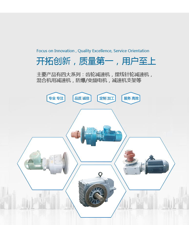 江陰市佳友減速機(jī)有限公司,是江蘇省早期生產(chǎn)減速機(jī)的制造服務(wù)型企業(yè)。 現(xiàn)在主要產(chǎn)品有四大系列齒輪減速機(jī),擺線(xiàn)針輪減速機(jī),混合機(jī)用減速機(jī),防爆/變頻電機(jī),減速機(jī)支架等。廣泛運(yùn)用于化工,冶金,礦山,物流,醫(yī)藥,紡織,農(nóng)業(yè),電力等眾領(lǐng)域......